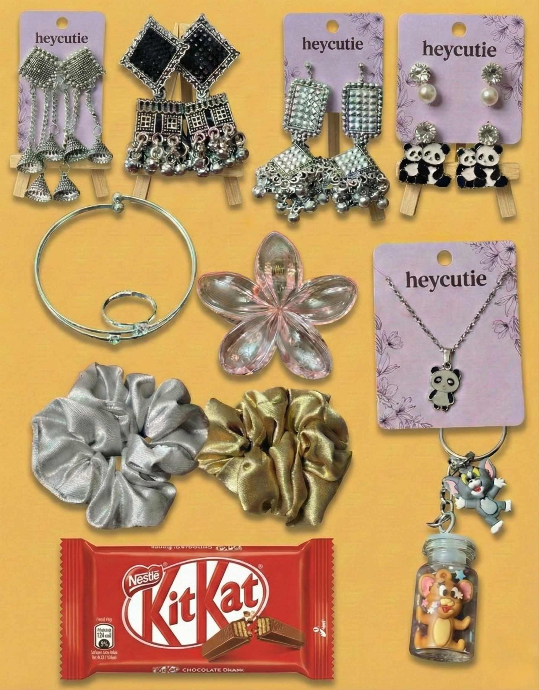- Panda stud & pearl earring set โ Crystal and pearl studs paired with panda-shaped earrings on a jewellery card.